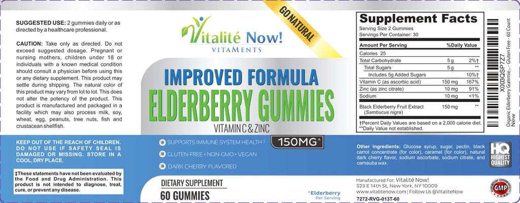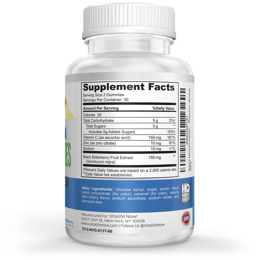 • Vitalite Now Organic Elderberry Gummies are USDA certified natural immune system boosters with high potency and concentration natural Sambucus Extract.